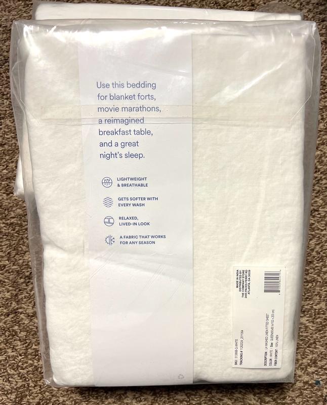 Premium Breathable Washed Linen Solid Fitted Bed Sheet - White, Twin
