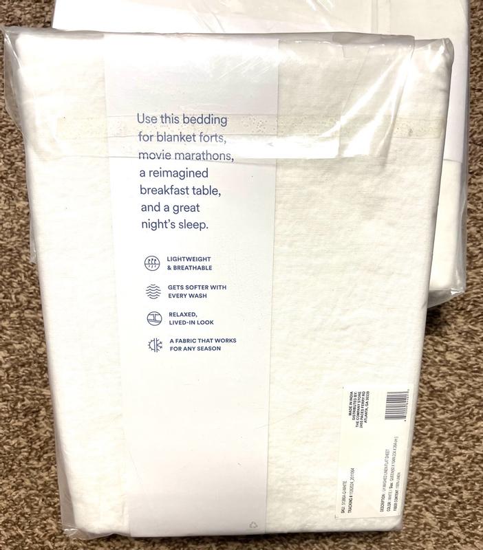 Premium Breathable Washed Linen Solid Flat Bed Sheet - White, Twin/Twin XL