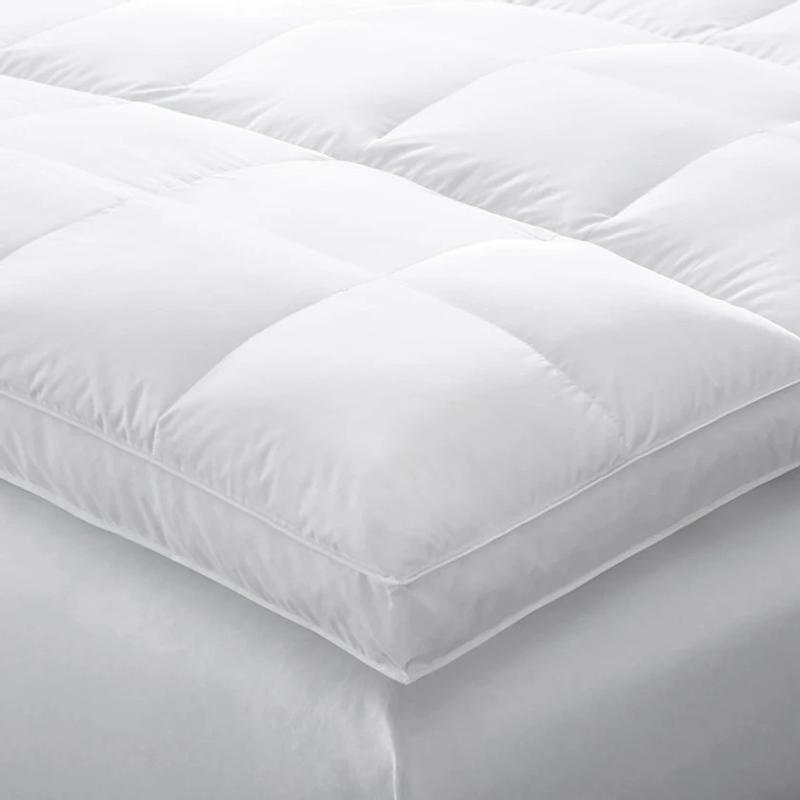 This sumptuous Pillowtop Featherbed is crafted in two layers—supportive goose feathers topped with lofty white duck down—for the ultimate in softness and comfort. The bottom layer is sewn of smooth cotton twill and filled with Hungarian white goose feathers for maximum support. It's topped with a second layer of opulent Hungarian white duck down for heavenly softness that cushions pressure points and relaxes the muscles. The top layer is wrapped in a buttery-soft cotton sateen shell engineered with 10” baffle-box stitching for maximum loft.