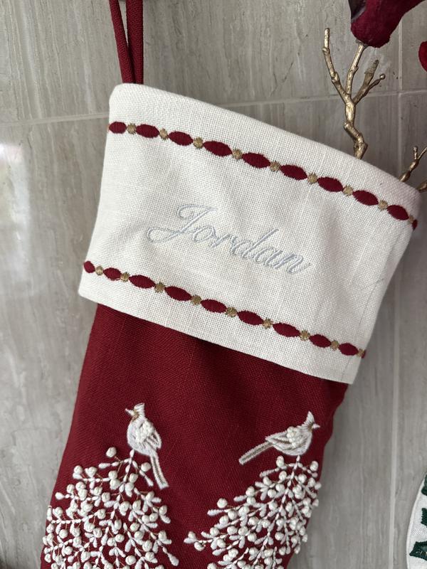 The holiday stockings are well-made with sturdy fabric, beautiful embroidery, and generous sizing that allows for ample gift-filling. Customers are highly satisfied with the overall quality and craftsmanship, though a few noted minor issues like off-center lettering or small font size on certain designs. The stockings are described as elegant and suitable for long-lasting holiday traditions.