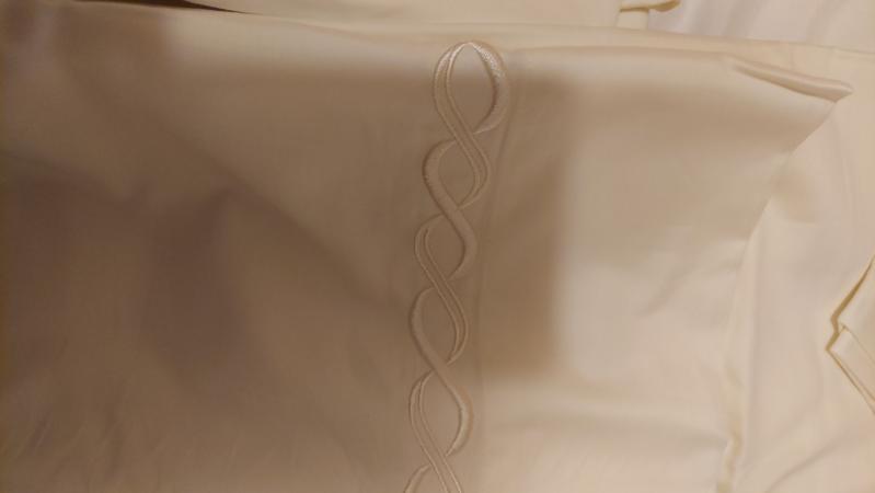 - An embroidered wave motif gives a polished, tailored finish to this luxurious five-star sheet set