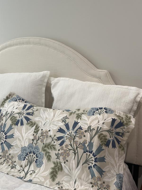 Printed with elevated blooms blown up to a dramatic scale, our Lila Floral Cotton Sateen Comforter adds a tropical touch to contemporary and more traditional settings. The design is rendered in palette of chambray, indigo, white, sage, sand, and palm green on a beige ground. Crafted of buttery-soft and breathable sateen, this bedding collection has a subtle sheen and wrinkle-free finish and is perfect for all-season comfort.
