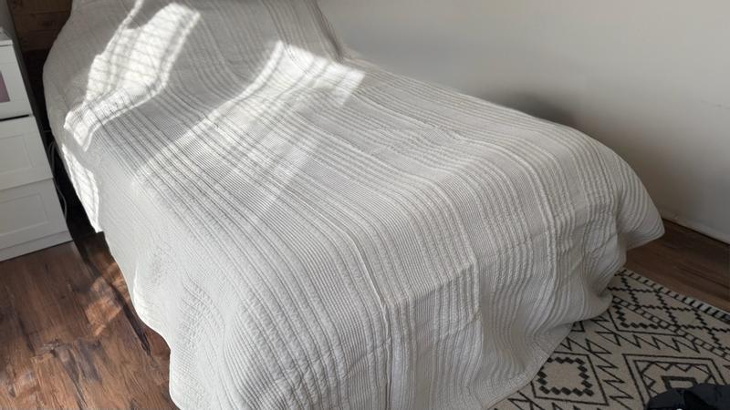 The quilt is described as soft, cozy, and luxurious, with a refined design that complements various decor styles. Customers praise its exceptional quality, comfort, and durability, noting it maintains its appearance well after washing. The quilt provides the perfect warmth and weight without being too heavy or hot, allowing users to keep the thermostat lower for energy savings. Overall, customers are highly satisfied with the quilt's quality and performance.