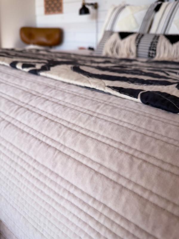 As the weather cools, our Line Stitch Cotton Velvet Quilt is the best way to bring some glamour to the bed. With linear quilt stitching, this luxurious layer warms the bed with its understated patterning and wonderful texture. Crafted of pure cotton, it comes in your choice of opulent colors.