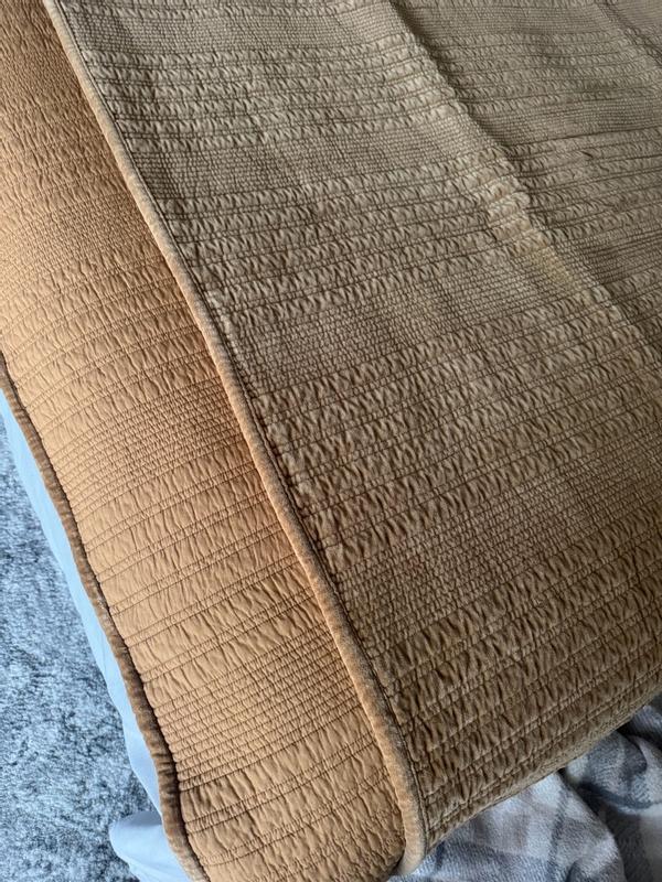 The quilt is described as soft, cozy, and the perfect weight for year-round use, providing warmth without being too heavy. Customers praise its exceptional quality, luxurious feel, and versatile design, with the line stitch detailing and velvet-like texture adding an elegant, refined look. The quilt is also noted as well-made, durable, and easy to care for, exceeding expectations in terms of quality and aesthetics.