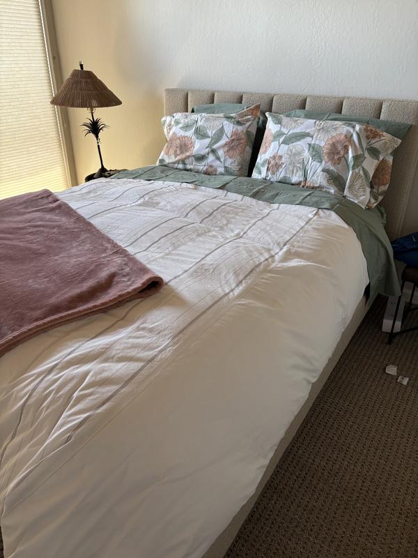 - Entire collection includes a sheet set, flat sheet, fitted sheet, pillowcases, duvet cover, comforter, and sham, each sold separately
