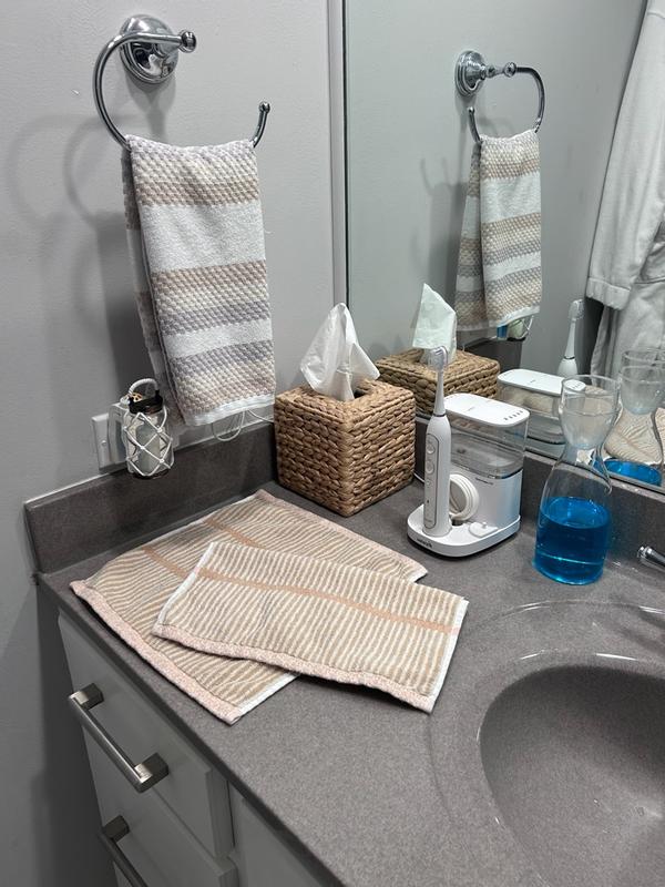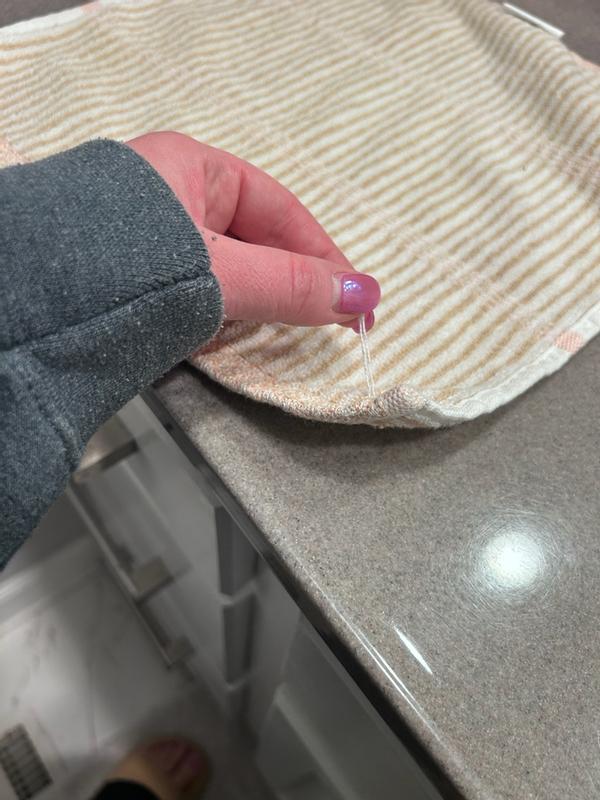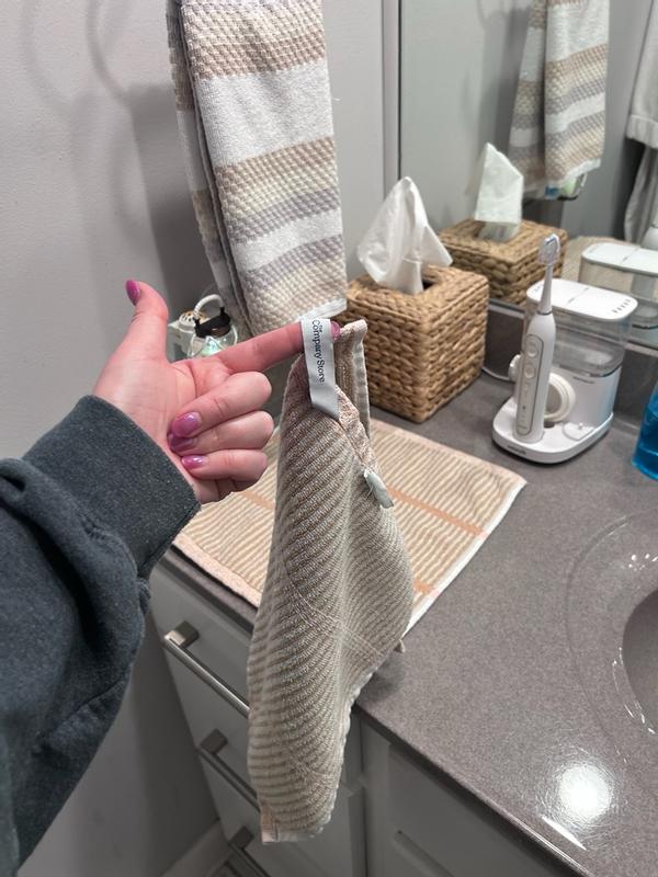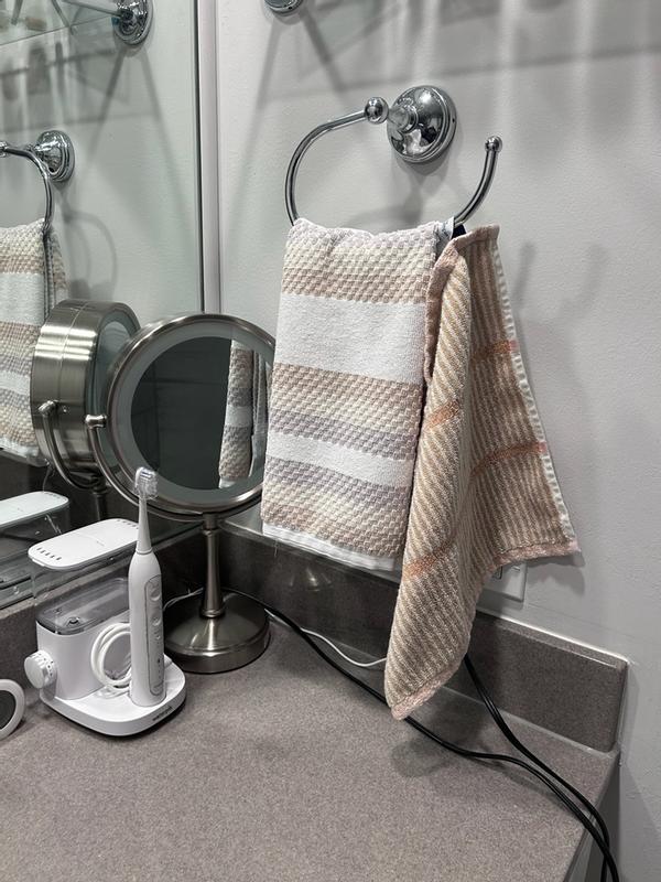 The towels are described as soft, high-quality, and featuring an attractive, neutral design that complements various bathroom styles. Customers praise the towels as absorbent and quick-drying, though a few noted they shed a bit or were not as absorbent as expected. Overall, reviewers are very satisfied with the towels and many plan to purchase them again or recommend them.
