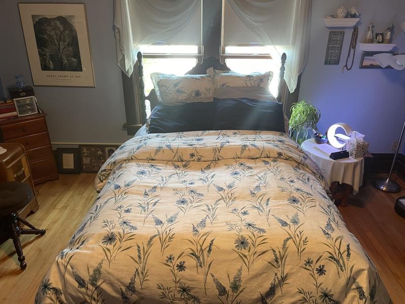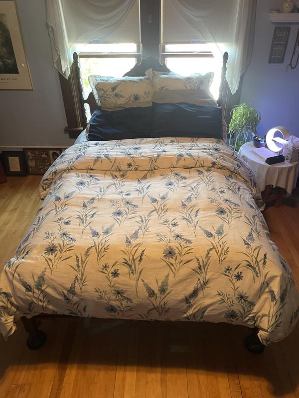 Our Nature's Vine Cotton Sateen Duvet Cover features hand-drawn flowers in a restful palette of chambray, cornflower blue, sage, aqua, and indigo against a softly mottled ground. Crafted of buttery-soft and breathable sateen, this bedding collection has a subtle sheen and is perfect for all-season comfort.