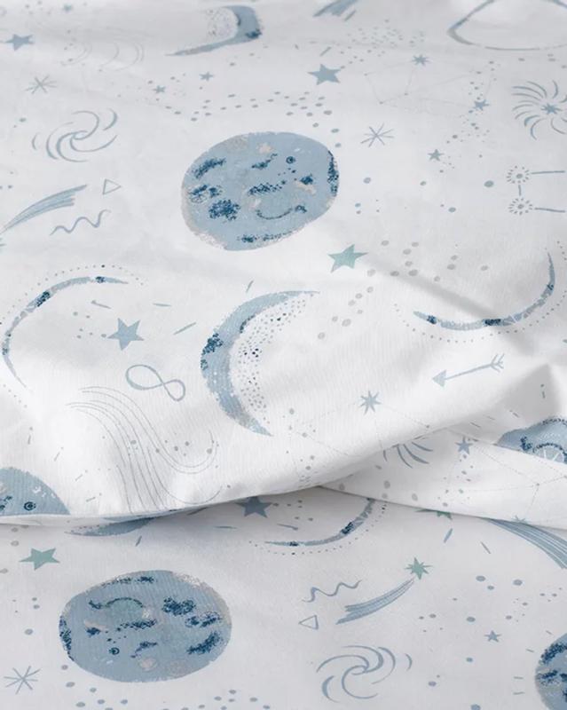 This out-of-this-world kid’s duvet cover set is illustrated with a galaxy’s worth of crescent moons, comets, and twinkling stars, and sewn of premium organic cotton percale for a crisp finish. Our eco-friendly bedding is good for your little one and the planet.