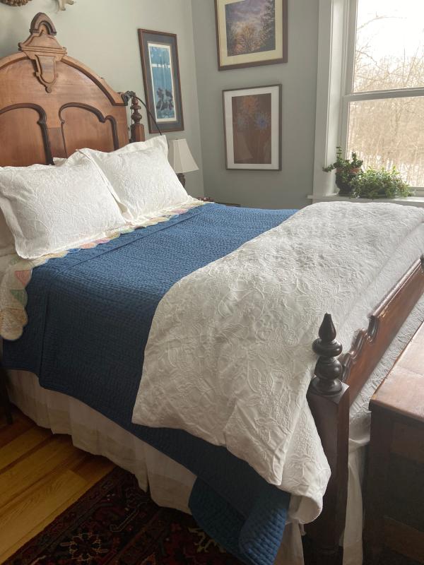 - Comforter’s corner loops attach to duvet cover’s ties to secure both in place