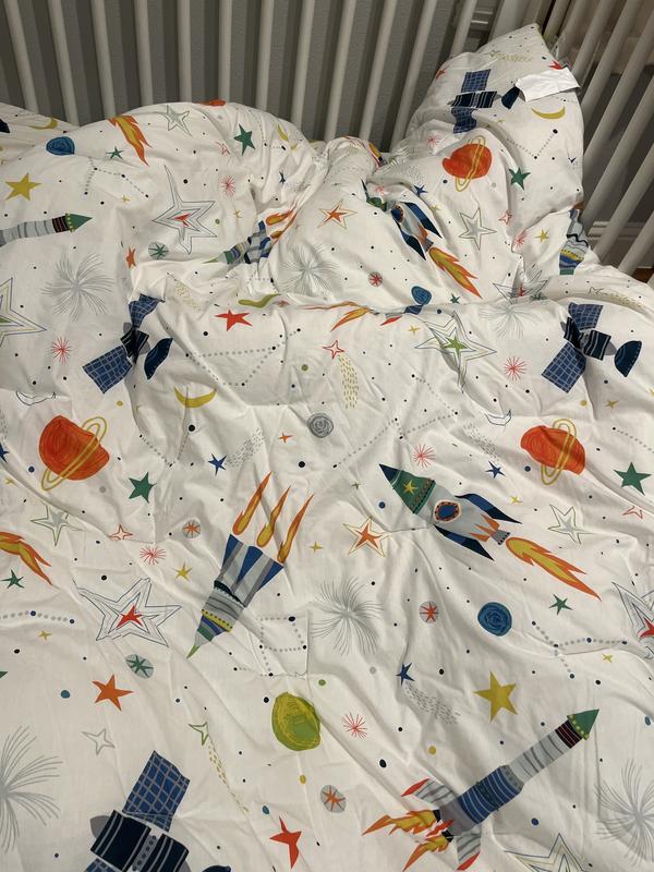 Simply stellar: Our snow-white Outer Space Cotton Percale Kids Comforter Set is illustrated with a colorful collection of rockets, planets, moons, and stars. If you and your little one love this intergalactic collection (and we know they will), then you’ll think our coordinating Outer Space Quilt is simply out of this world. Sewn of organic cotton percale, this earth-friendly collection has a cool, crisp hand that gets better with every wash.