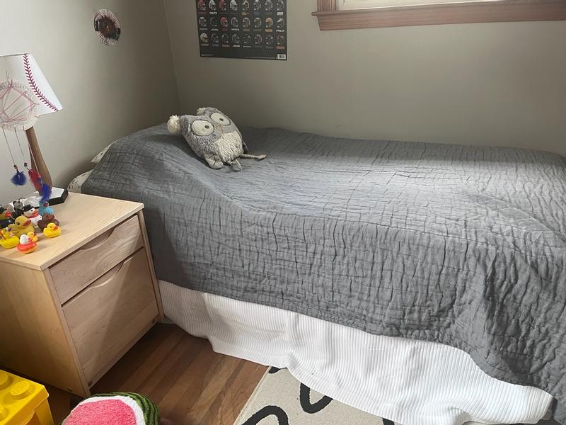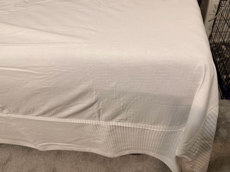 The Matelassé bed skirt is praised for its high-quality fabric that is thick, durable, and soft with an elegant, textured design. Customers report the bed skirt drapes beautifully over the bed frame and is a great value, with many planning to purchase additional ones. The overall consensus is that this is a sophisticated, high-quality bedding essential that enhances the bedroom's appearance.