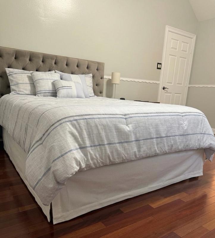 Customers overwhelmingly praise the bed skirt for its exceptional quality and luxurious appearance. Most highlight the thick, durable matelassé fabric with its premium 100% cotton construction that feels substantial and well-made. Reviewers consistently note the elegant design with textured grid weave and vertical stripes creates a sophisticated, hotel-like finish that complements any decor. Many appreciate the generous 18-inch drop that fully conceals bed frames, the perfect fit that stays in place without slipping, and the machine-washable convenience requiring no ironing. A few report rare sizing concerns, though most consider it a worthwhile bedroom upgrade.