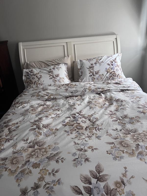 Our Primrose Bloom Cotton Sateen Duvet Cover showcases vintage-inspired, digitized florals in romantic shades of sepia, gold, sand, periwinkle, and heather on a smooth white ground. Crafted of buttery-soft and breathable sateen, this bedding collection has a subtle sheen and wrinkle-free finish and is perfect for all-season comfort.
