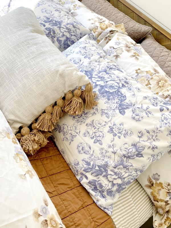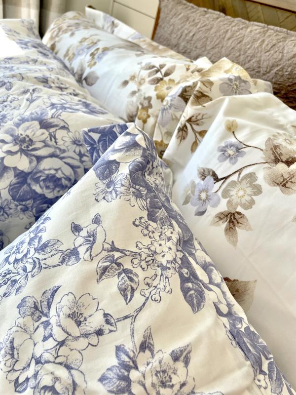 Our Primrose Bloom Cotton Sateen Sham showcases vintage-inspired, digitized florals in romantic shades of sepia, gold, sand, periwinkle, and heather on a smooth white ground. Crafted of buttery-soft and breathable sateen, this bedding collection has a subtle sheen and wrinkle-free finish and is perfect for all-season comfort.