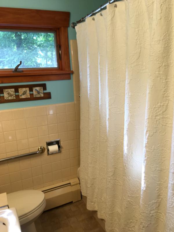 • Traditional matelassé shower curtain, patterned with branches and vining florals