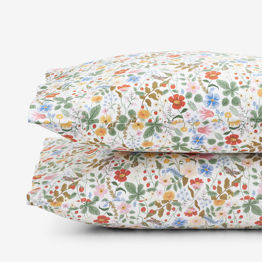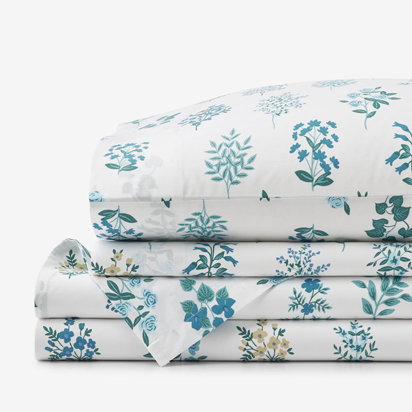 This exclusive Rifle Paper Co. bed sheet collection features a dreamscape of vibrant florals and enchanting botanicals perfect for creating a lush, relaxing space. Each of these sheets is printed with signature Rifle Paper Co. designs, including delicate blooms and whimsical botanicals. Imagine drifting to sleep beneath sheets showcasing watercolor-inspired florals or waking up refreshed atop a pillowcase that displays roses in bloom. This collaboration includes exclusive hand-painted prints—from playful, swirling vines to macro- or micro-florals—for a unique collection. Whether you prefer bold bursts of color, rich jewel tones, or serene pastel hues, there’s something in our Rifle Paper Co. sheets collection to suit every taste.