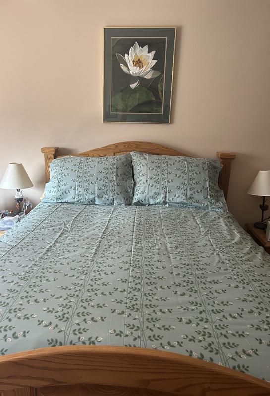- Entire collection includes a sheet set, flat sheet, fitted sheet, pillowcases, duvet cover, comforter, sham, and shower curtain, each sold separately