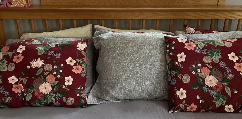 The Rifle Paper Co. Dahlia Cotton Percale Pillowcase Set features a timeless floral print of illustrated, vintage-inspired blooms in two colorways. Choose vibrant hues against a crisp white backdrop, or soft muted tones set against a rich burgundy. Our breathable percale bedding collection is an excellent choice for year-round use. Rifle Paper Co.'s hand-painted designs bloom across our premium bedding, with bold colors and florals to bring beauty to your everyday. Part of our Rifle Paper Co. x The Company Store collection.