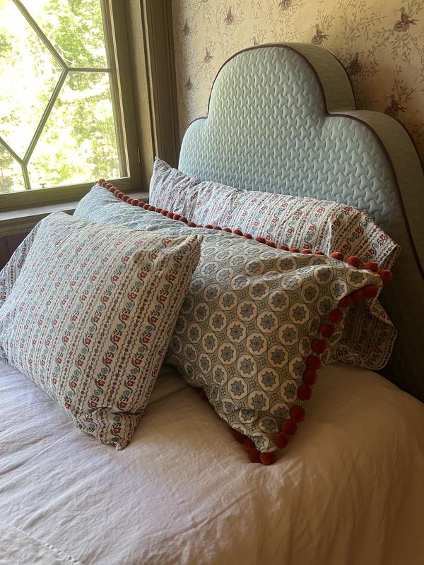 Inspired by vintage wallpaper, the Rifle Paper Co. Delphine Pillowcase Set features a floral stripe in blue, red, mauve, and sage against a soft ivory ground. This pillowcase set pairs perfectly with the coordinating Lottie sheets, pillow covers, and quilt (sold separately). Our breathable percale bedding collection is an excellent choice for year-round use. Rifle Paper Co.'s hand-painted designs bloom across our premium bedding, with bold colors and florals to bring beauty to your everyday. Part of our Rifle Paper Co. x The Company Store collection.
