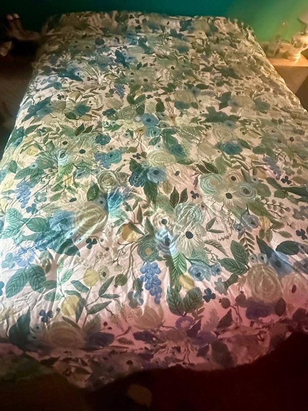 The Rifle Paper Co. Garden Party comforter is praised for its beautiful, vibrant floral design, soft and high-quality fabric, and excellent craftsmanship. Customers describe the comforter as cheerful, colorful, and gorgeous, with the pattern being even more stunning in person. The comforter is also noted for being warm, cozy, and the perfect weight for various seasons. Many reviewers find the reversible and versatile design to be a positive feature. While a few customers expressed minor disappointments, the majority of customers are highly satisfied with the product.