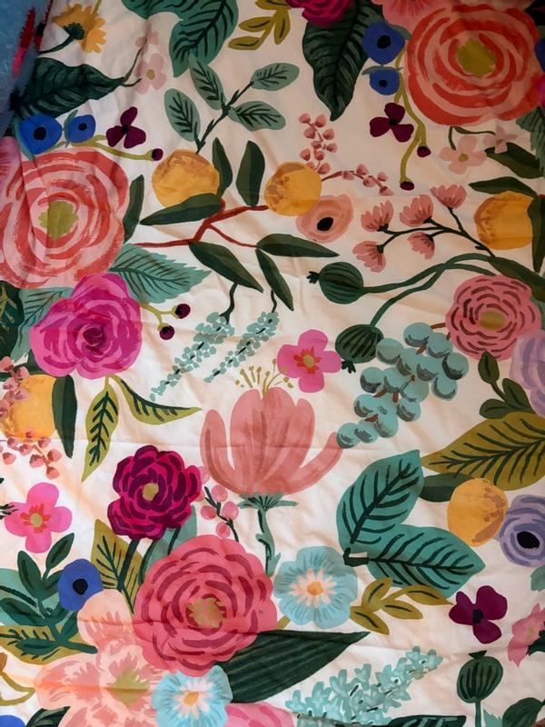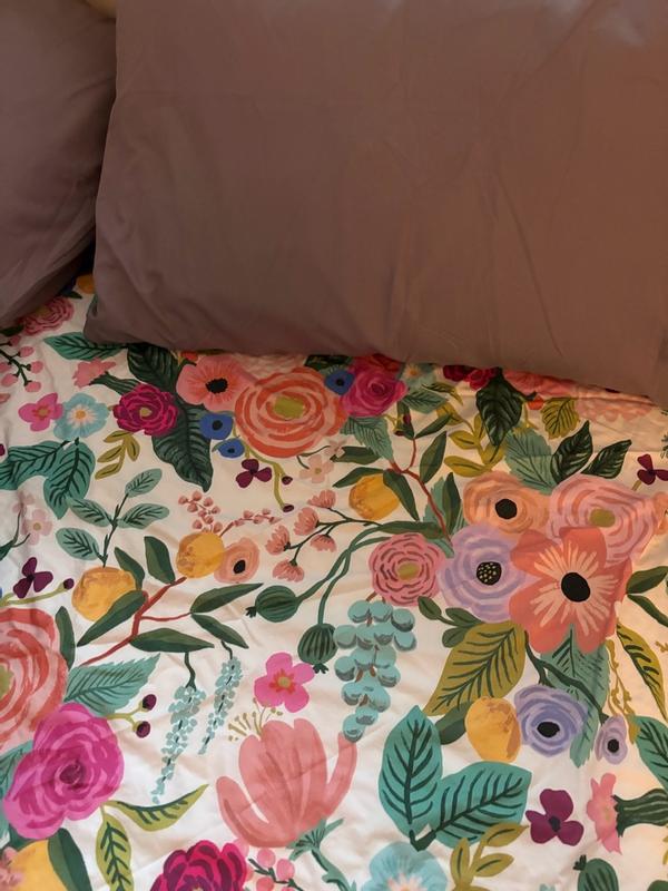 Dress the bed in our Rifle Paper Co. Garden Party Percale Fitted Sheet, featuring bold bouquets and fruits in your choice of pink, blue, or lilac. The premium bedding in our Rifle Paper Co. x The Company Store collection is made from breathable percale—an excellent choice for year-round use. It blooms with bold colors and florals to bring beauty to your everyday.