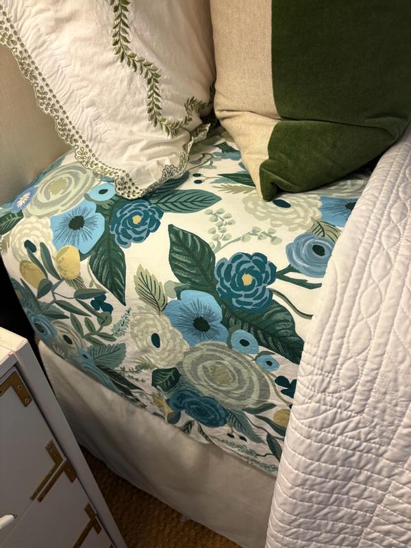Dress the bed in our Rifle Paper Co. Garden Party Percale Fitted Sheet, featuring bold bouquets and fruits in your choice of pink, blue, or lilac. The premium bedding in our Rifle Paper Co. x The Company Store collection is made from breathable percale—an excellent choice for year-round use. It blooms with bold colors and florals to bring beauty to your everyday.