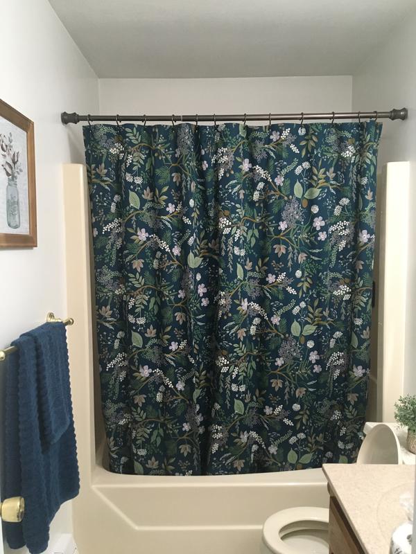 Bring the outdoors in: The Rifle Paper Co. Juniper Forest Sateen Shower Curtain paints an imaginative scene with clusters of berries, hanging moss, pinecones, and trailing botanicals in restful shades of green, brass, pale gray, and white on a pine green ground. Rifle Paper Co.'s hand-painted designs of floral blooms and bold colors bring beauty to your everyday. Part of our Rifle Paper Co. x The Company Store collection.