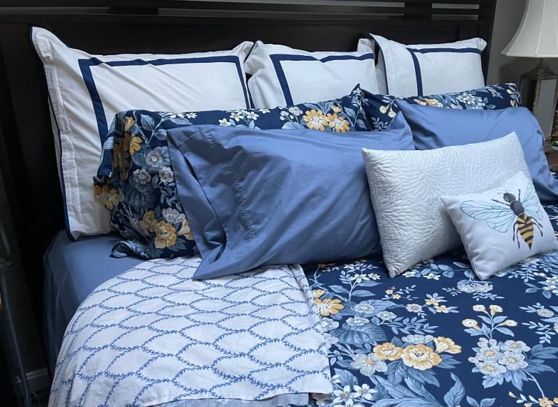 - Entire collection includes a sheet set, flat sheet, fitted sheet, and additional pillowcases, each sold separately
