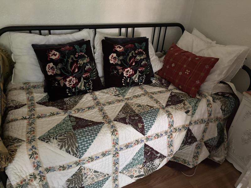 Our signature Rifle Paper Co. Mulberry Farm Patchwork Quilt is patterned with lush greenery and flowers against a rich mulberry ground, creating a gorgeous layer that you can cuddle up with any time of year. Handcrafted by skilled artisans and washed for lived-in softness, its as comfortable as it is beautiful. Rifle Paper Co.'s hand-painted designs of floral blooms and bold colors bring beauty to your everyday. Part of our Rifle Paper Co. x The Company Store collection.