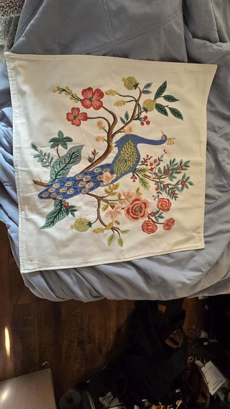 Customers overwhelmingly praise the pillow cover for its exceptional hand-embroidered details, premium 100% cotton slub fabric, and vibrant peacock design. Reviewers consistently highlight the intricate stitching that creates a three-dimensional, artisanal quality, describing the thick, textured material as durable and luxurious. Many note the bold colors add striking visual impact to home spaces, while others appreciate the well-executed hidden zipper and sturdy construction. A few mention the cover runs larger than expected, though they still find it beautiful. Overall, customers consider it a high-quality, transformative decorative piece.