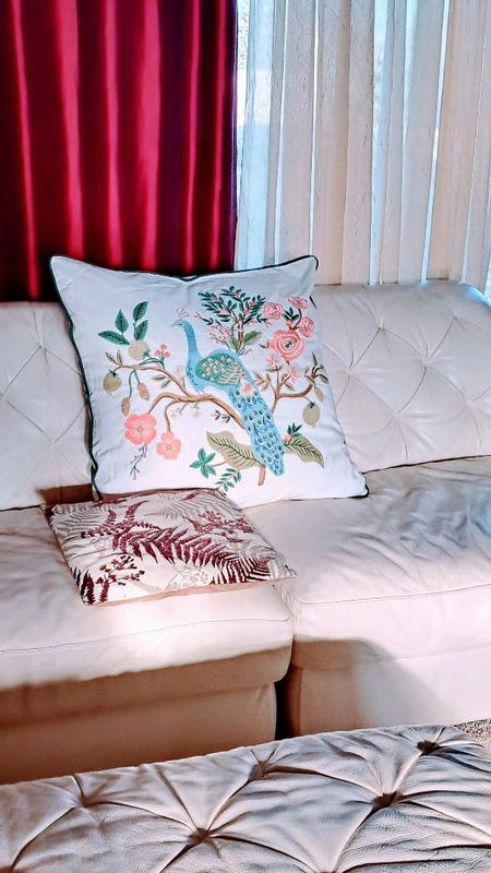 Our Rifle Paper Co. Square Pillow Cover features a decorative peacock print and a lush landscape of winding branches and blooming flowers. It's available in your choice of evergreen, ivory, cream, or navy and coordinates with our Peacock sateen bedding (sold separately). Part of the Rifle Paper Co. x The Company Store collection.