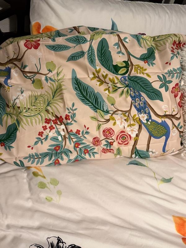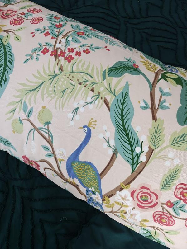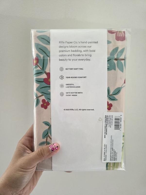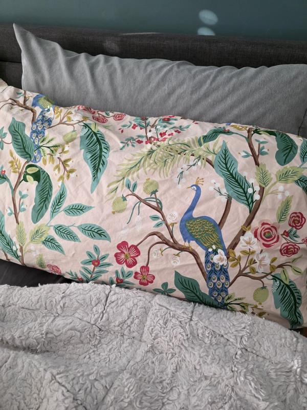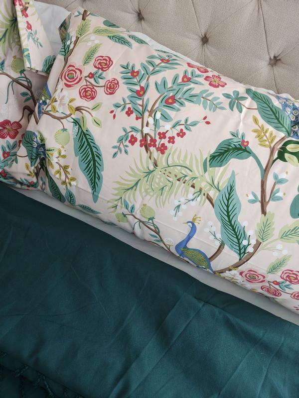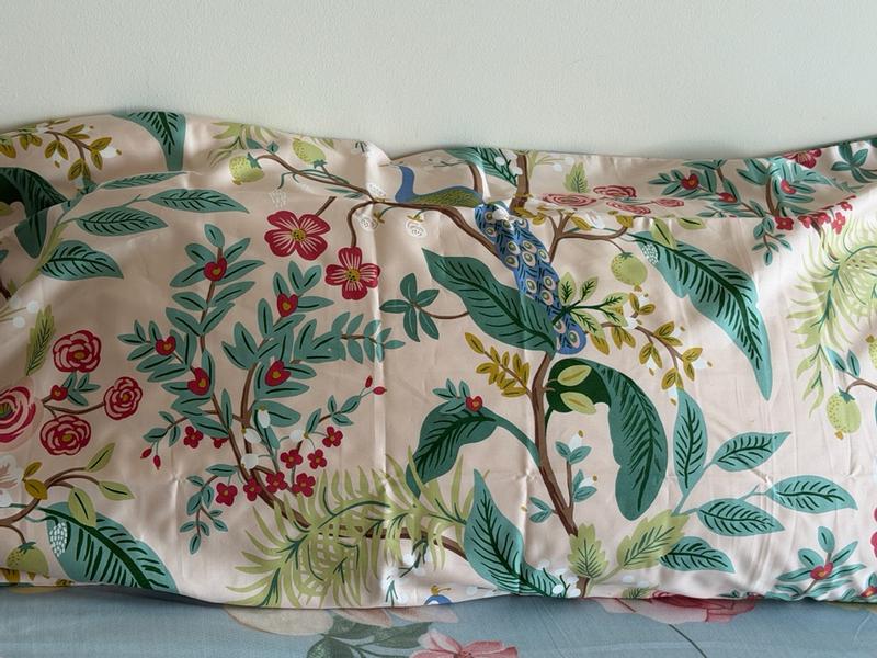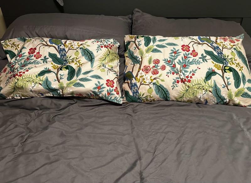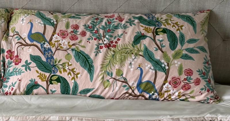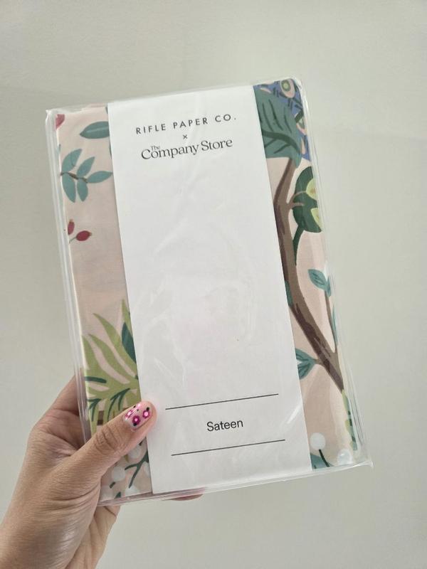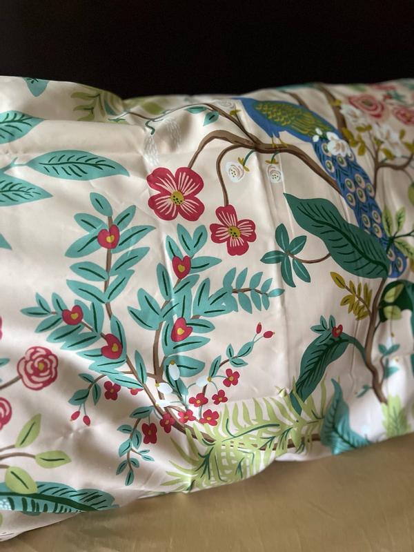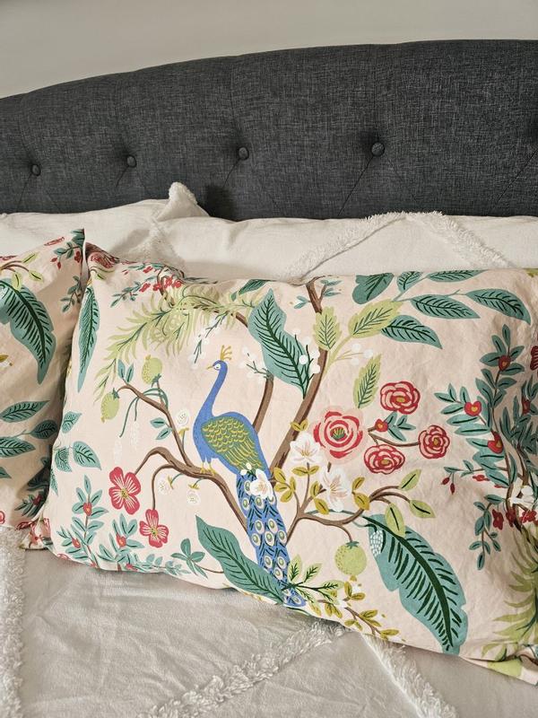 The Rifle Paper Co. Peacock Sateen Pillowcase Set features a sophisticated scene with winding branches, perching birds, and blooming flowers. The buttery-soft sateen has a subtle sheen, and it's breathable enough for all-season comfort. Choose from a range of fresh new color options, including evergreen, ivory, cream, or blush. Part of the Rifle Paper Co. x The Company Store collection.