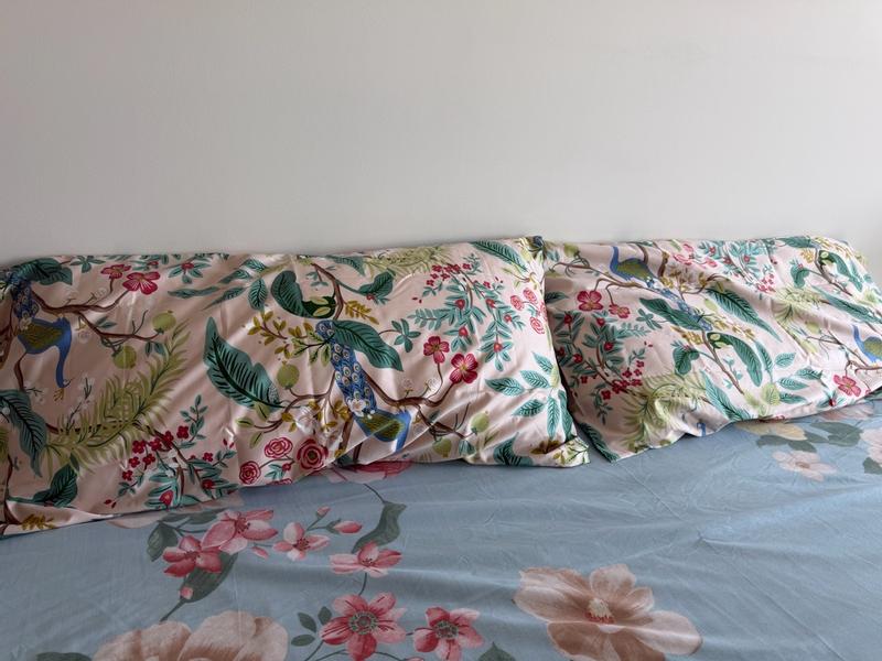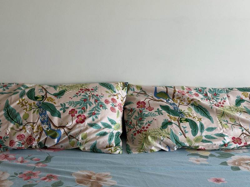 The Peacock pillowcases and sheet set are praised for their beautiful, vibrant, and trendy design. Customers find the rich colors and intricate pattern visually appealing and uplifting. The fabric is described as smooth, soft, and of high quality, though it may not be as soft as cotton initially but softens with washing. Many appreciate the generous size and deep pockets of the sheets, which stay in place well. Overall, the product is considered excellent value, with customers stating they would purchase again and highly recommend the set. Some minor criticisms include the pillowcases being a snug fit for overstuffed pillows and the fabric not being as soft as some would prefer.