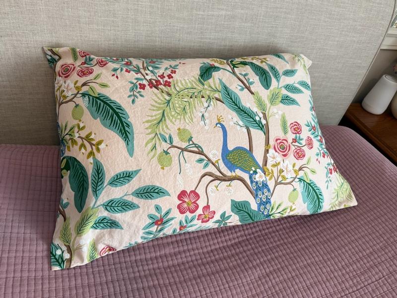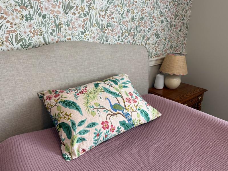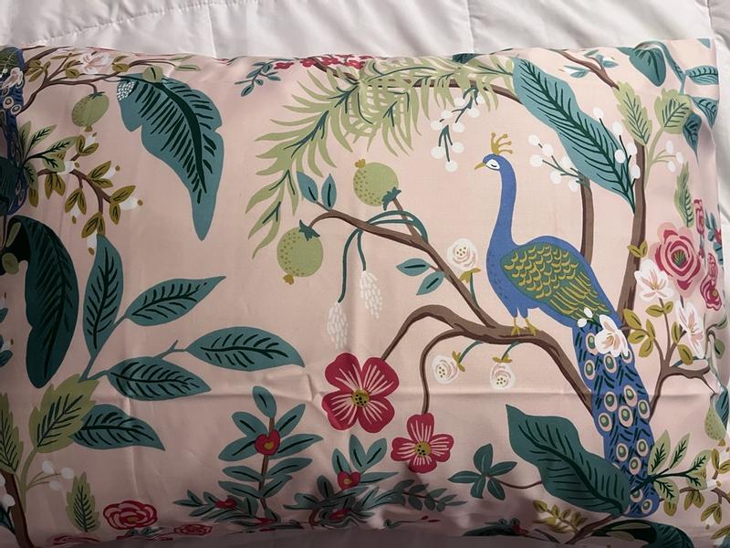 The Rifle Paper Co. Peacock Sateen Pillowcase Set features a sophisticated scene with winding branches, perching birds, and blooming flowers. The buttery-soft sateen has a subtle sheen, and it's breathable enough for all-season comfort. Choose from a range of fresh new color options, including evergreen, ivory, cream, or blush. Part of the Rifle Paper Co. x The Company Store collection.