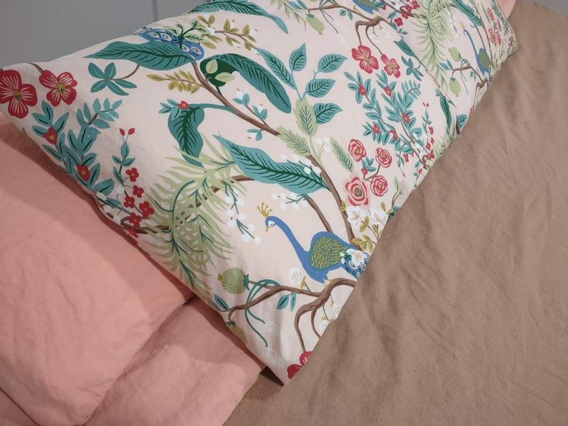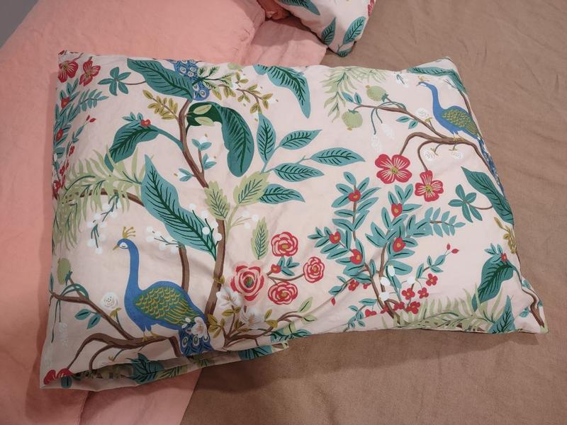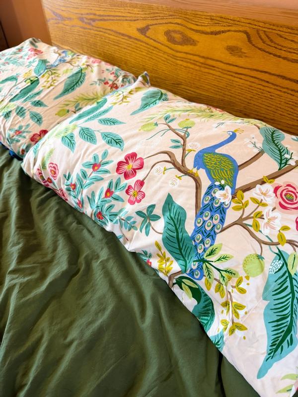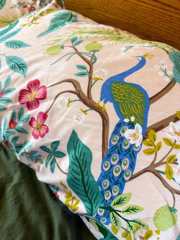 The Rifle Paper Co. Peacock Sateen Pillowcase Set features a sophisticated scene with winding branches, perching birds, and blooming flowers. The buttery-soft sateen has a subtle sheen, and it's breathable enough for all-season comfort. Choose from a range of fresh new color options, including evergreen, ivory, cream, or blush. Part of the Rifle Paper Co. x The Company Store collection.