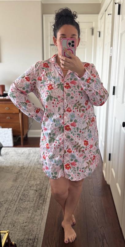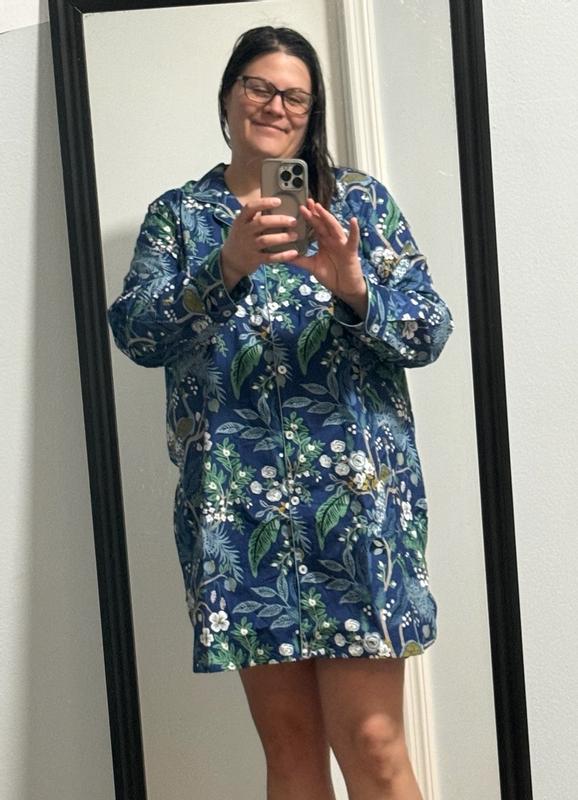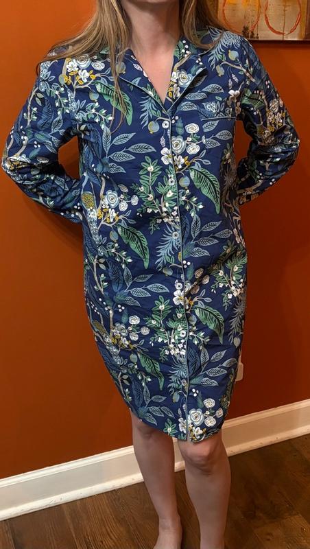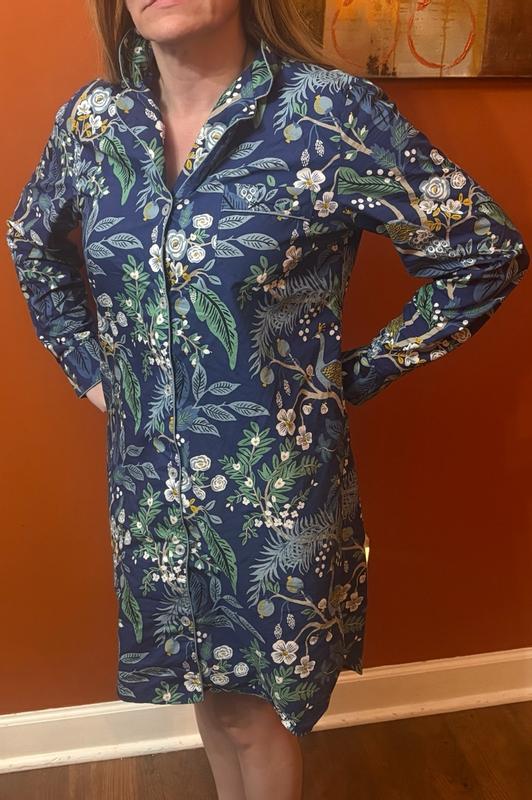 Made with lazy Saturdays in mind, our classic Rifle Paper Co. poplin women's nightshirt is as pretty as can be in a new seasonal design: a fresh hydrangea print in shades of green, white and powder blue. With an ultra-comfy fit and cool, crisp hand, our classic women's nightshirt is like sleeping in your favorite button-down shirt. Part of our Rifle Paper Co. x The Company Store collection.