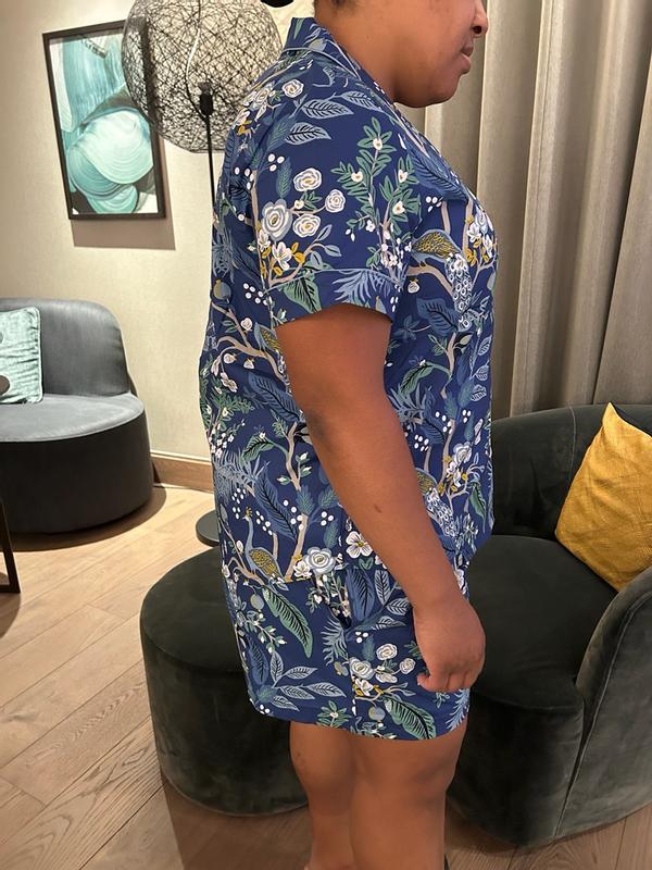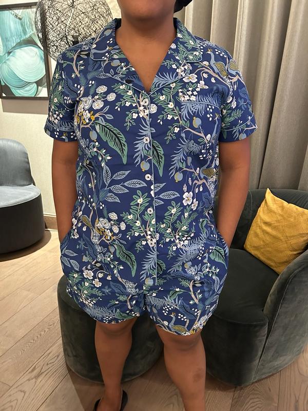 Our women's poplin pajama shorts set is back for the season in an adorable Rifle Paper Co. design: our ultra-pretty hydrangea print in white, green, and powder blue. It's everything you love about our sleepwear: an easy-going fit, a breathable fabric and a signature Rifle Paper Co. print. The poplin weave has the smooth, crisp hand of your favorite button-down… perfect for when the temperature starts to warm up. Part of our Rifle Paper Co. x The Company Store collection.