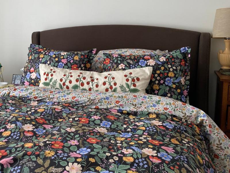 Butterflies flutter around beautiful blooms and sweet berries on our Strawberry Fields Percale Duvet Cover, creating a lush landscape in cornflower blue, blush, gold, red, pink and green on your choice of a white or black ground. Complete the scene by layering these sheets with our Strawberry Fields collection (sold separately). Our breathable percale bedding collection is an excellent choice for year-round use. Rifle Paper Co.'s hand-painted designs of floral blooms and bold colors bring beauty to your everyday. Part of our Rifle Paper Co. x The Company Store collection.