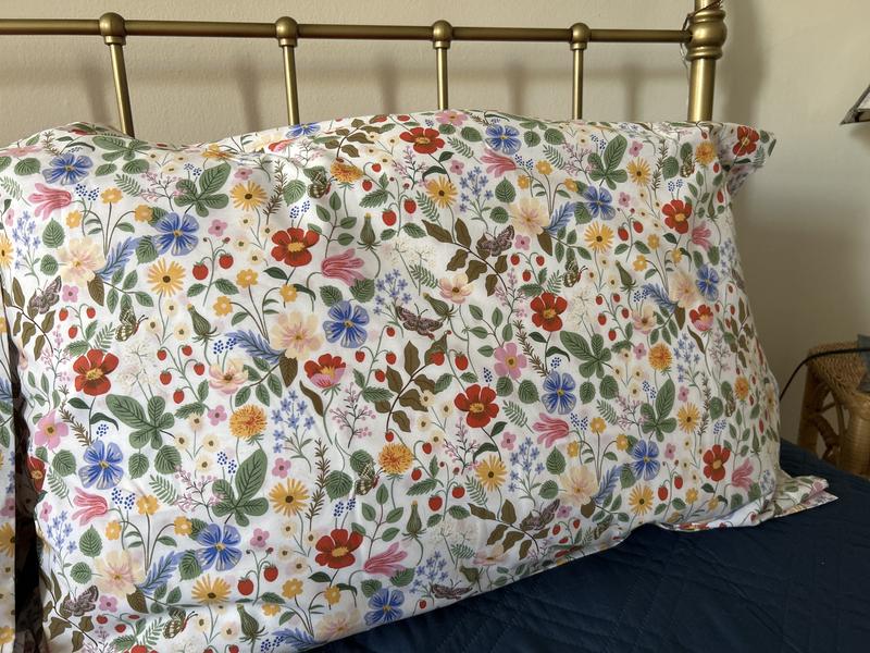 Butterflies flutter around beautiful blooms and sweet berries on our Strawberry Fields Percale Sham, creating a lush landscape in cornflower blue, blush, gold, red, pink and green on your choice of a white or black ground. Complete the scene by layering these sheets with our Strawberry Fields collection (sold separately). Our breathable percale bedding collection is an excellent choice for year-round use. Rifle Paper Co.'s hand-painted designs of floral blooms and bold colors bring beauty to your everyday. Part of our Rifle Paper Co. x The Company Store collection.