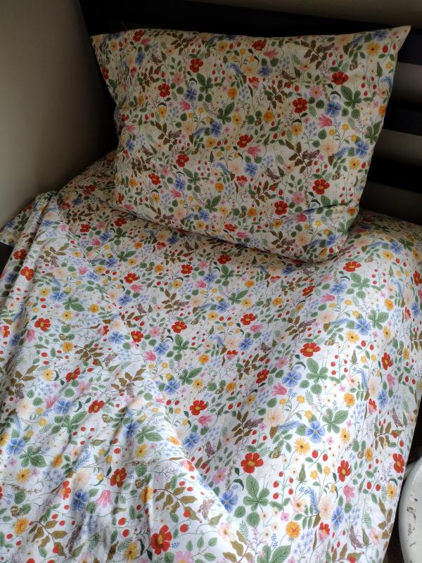 Butterflies flutter around beautiful blooms and sweet berries on our Strawberry Fields Percale Bed Sheet Set, creating a lush landscape in cornflower blue, blush, gold, red, pink and green on your choice of a white or black ground. Complete the scene by layering these sheets with our Strawberry Fields collection (sold separately). Our breathable percale bedding collection is an excellent choice for year-round use. Rifle Paper Co.'s hand-painted designs of floral blooms and bold colors bring beauty to your everyday. Part of our Rifle Paper Co. x The Company Store collection.