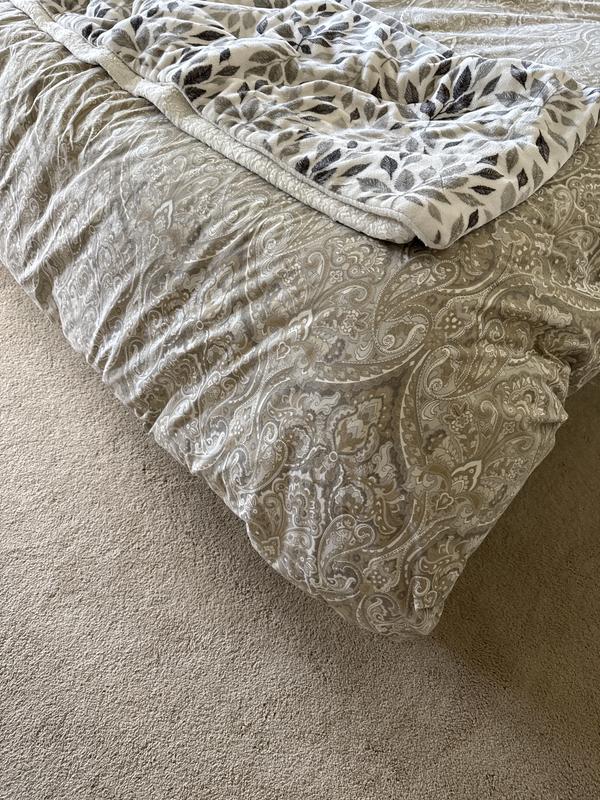 - Comforter’s corner loops attach to duvet cover’s ties to secure both in place