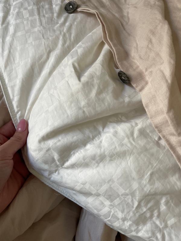 - Comforter’s corner loops attach to duvet cover’s ties to secure both in place