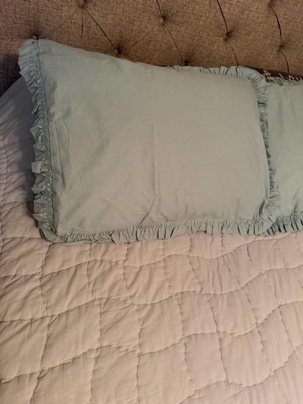 Solid Ruffle Garment Washed Cotton Percale Sham - White, Standard