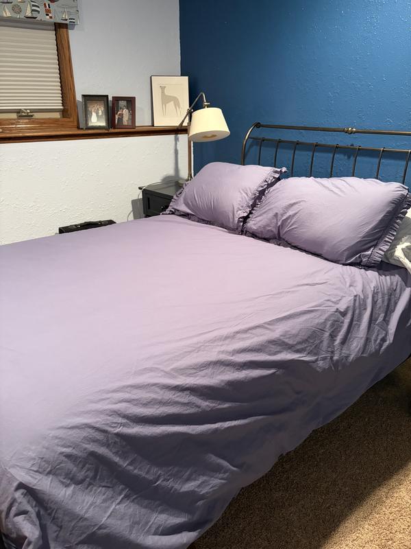 The Solid Ruffle Garment-Washed Percale Sheet Set features an embellished trim, comes in a beautiful assortment of colors, and has a soft, lived-in feel. It's woven of cool and breathable cotton percale and coordinates with our solid garment-washed percale bed linens (sold separately).