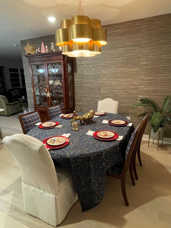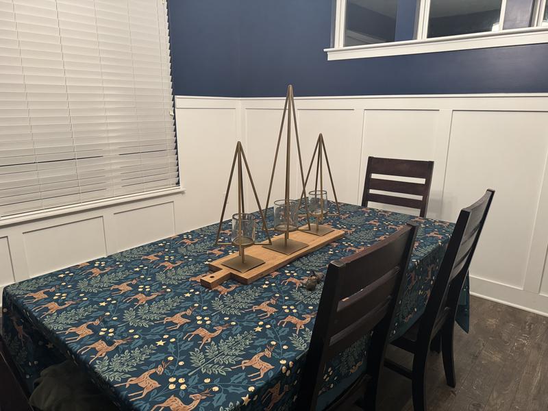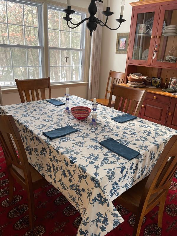 - Our exclusive tablecloth gives your dining space a beautiful update