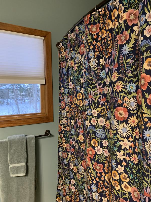 The Company Cotton™ Secret Meadow Percale Shower Curtain features a rich floral design to transform your bathroom into a botanical haven. Vibrant daisies, elegant poppies, and delicate wildflowers are interwoven with lush green foliage and set against a striking navy backdrop. This eye-catching pattern infuses your space with the charm of a blooming garden while maintaining a sophisticated aesthetic. Coordinates with our Secret Meadow Percale Bedding (sold separately).