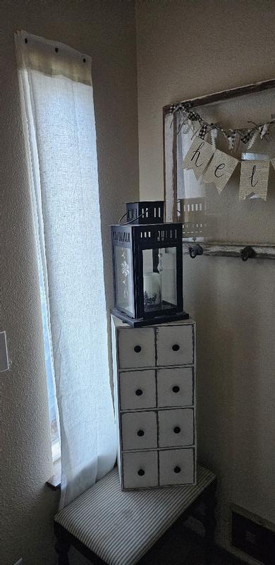 This sheer curtain is so gauzy and light! It makes a space feel very summery and beachy! I absolutely love how it filters the light that comes through it. I feel like it gives the room a soft and uplifting glow. It is very sheer, though, so