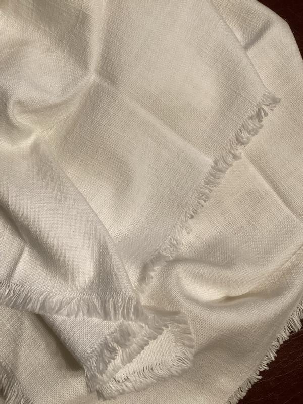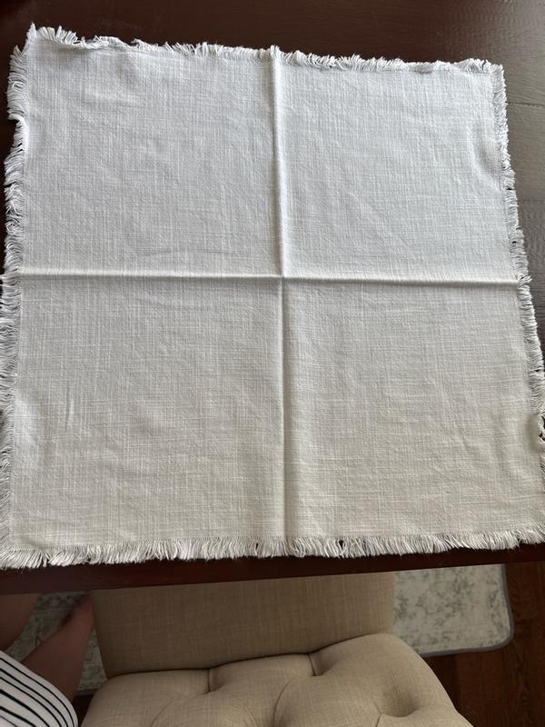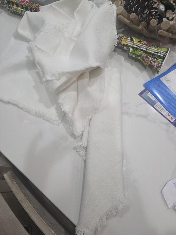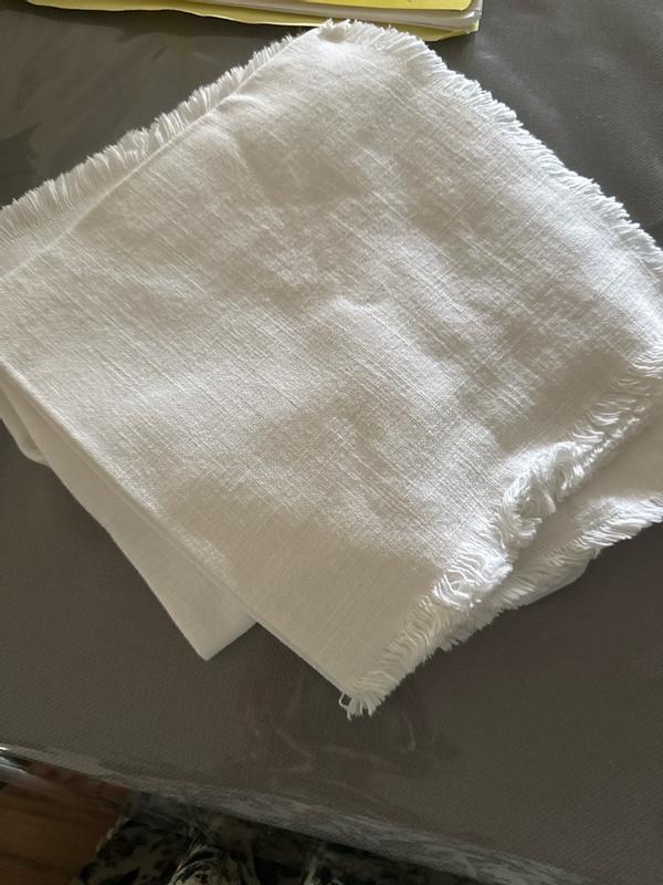 The cotton napkins are generally high-quality, thick, and durable. Many customers praised the soft, luxurious feel and elegant appearance of the napkins, which are suitable for both everyday use and more formal occasions. The larger size of the napkins was also appreciated, as it allows for more versatile folding and presentation. However, some customers experienced issues with fraying or unraveling of the fringes after washing, and the presence of tags that could scratch guests' faces. A few reviewers also felt the napkins were not very absorbent.