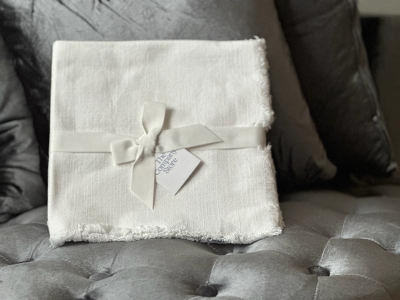 These solid-color cotton napkins feature eyelash fringe and a textural cotton weave, making them a beautiful way to elevate the everyday. Sold in a set of four, these versatile napkins are designed to mix and layer with our tablecloth, placemats, and table runner (sold separately).